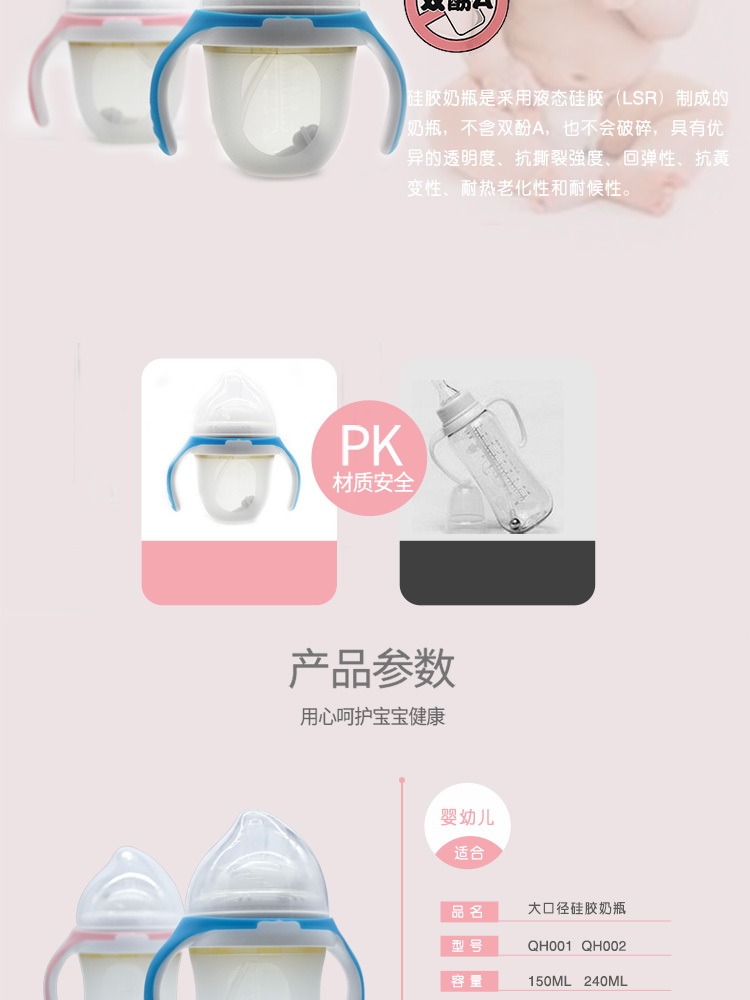 OEM/ODM定制加工產(chǎn)品名稱:廣口硅膠奶瓶